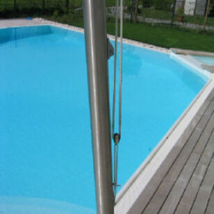 Wird das Segelende über eine Klemme, die an der Säule sitzt fixiert, ist diese ebenfalls fest mit dieser zuverschrauben.