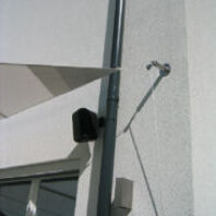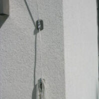 Die Leine wird über eine Klemme, welche am Mauerwerk oder auf der Säule sitzt fixiert (siehe Abb.3+4).