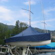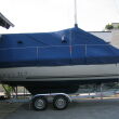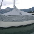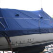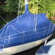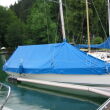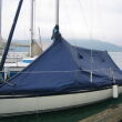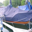 Die Zeltpersenning bietet Schutz für das ganze Schiff, da das gesamt Deck geschützt