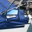 der vordere Teil einer zweigeteilten Zeltpersenning kann mittels eines Reißverschluss abgetrennt werden und kann somit auch als Cockpitpersenning verwendet werden.